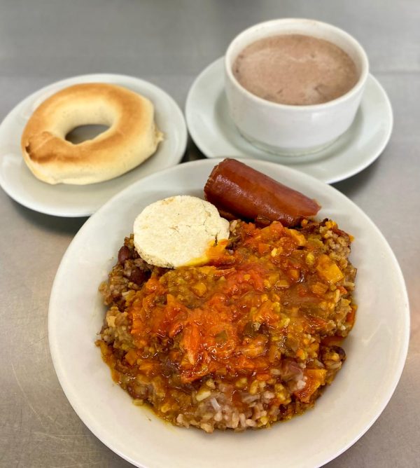 Calentao De Frijoles, Chorizo, Arepa, Pandebono, Café Con Leche O Chocolate