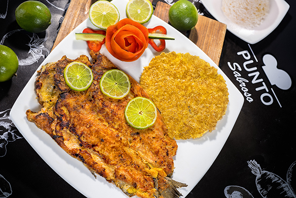 Trucha de 450gr, arroz, tostada de plátano y ensalada