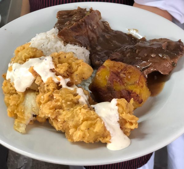 200 gr. de proteína con arroz, papa a la francesa, ensalada